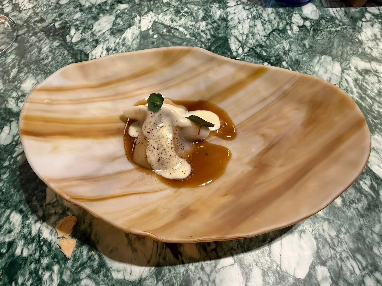 No hace ni un mes que Ca Seko ha abierto, así que todo está en rodaje. López es un cocinero autodidacta, formado sobre la propia práctica. Su recorrido empezó siendo muy tradicional, en Salamanca, la Rioja y el País Vasco, dominando la cocina de los asados y las parrillas a las brasas, así como las buenas verduras de la Ribera del Ebro. De allí al vivero vanguardista que supuso El Poblet del genial Quique Dacosta bajo el padrinazgo entonces de Tomás Arribas. Más tarde, a la nueva enseña de Arribas, el Peix & Brases, desde el que se otea el puerto y donde en 2021 consigue la primera y única estrella que ha venido revalidando todos los siguientes años. Allí conoce a la cocinera y pastelera ucraniana Zoriana Hlovak, de la región multicultural de Lvov. Zoriana, una cocinera de alta precisión, ganó hace unos años el premio del concurso gastronómico de cocina con cítricos del Huerto Todolí en Palmera.