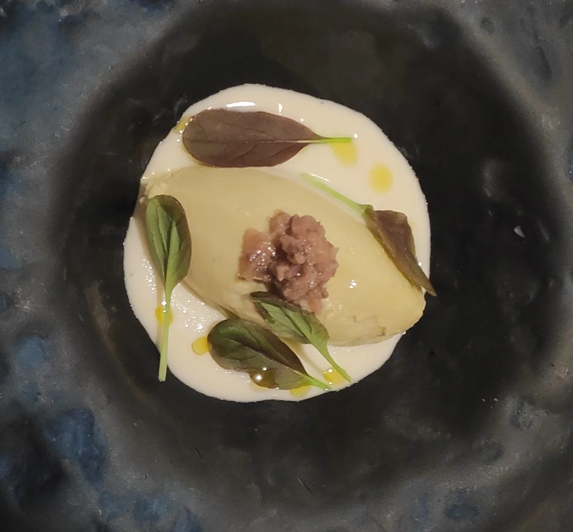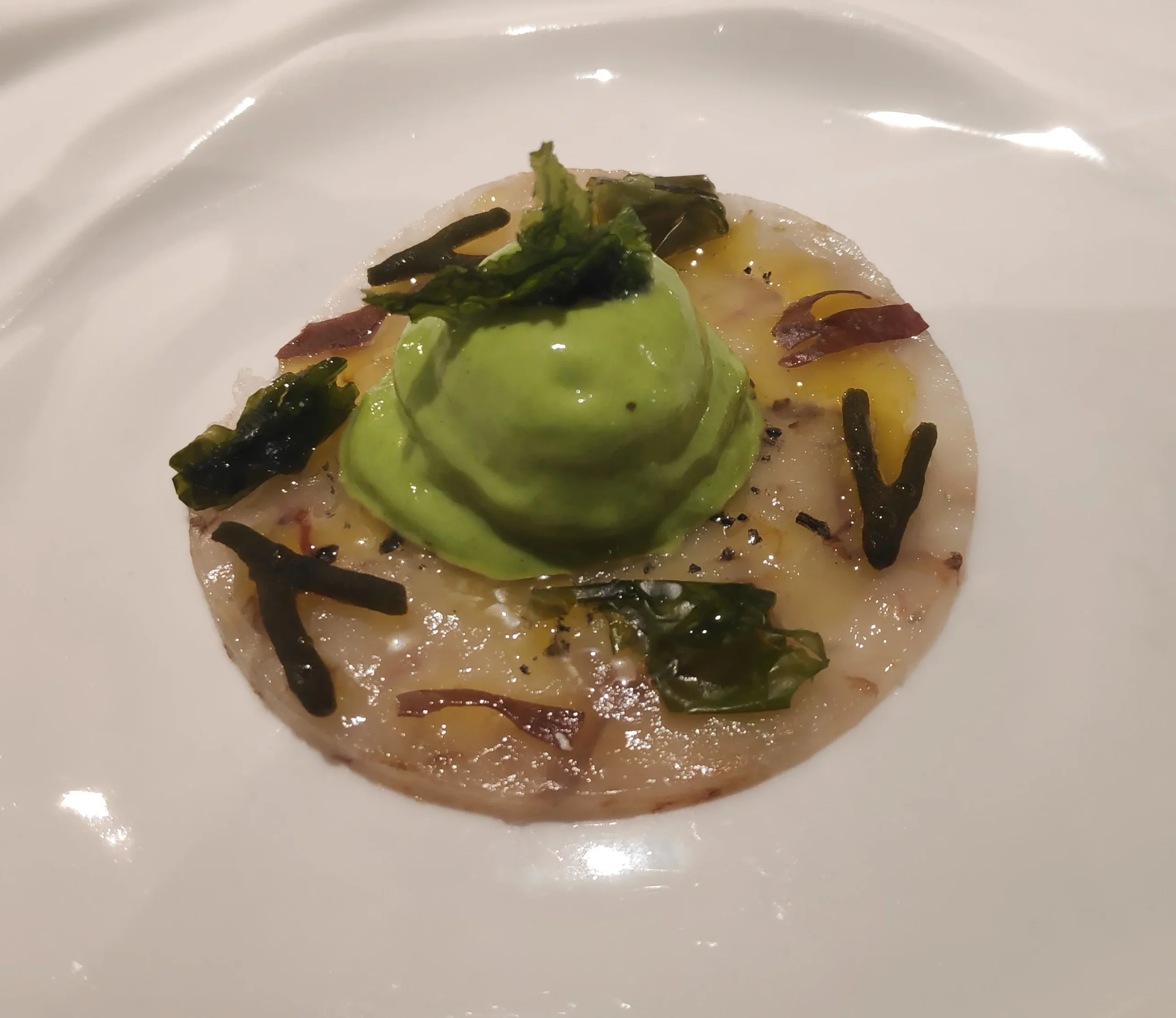 Gelat de Pak choi, llet d’ametla i anxova