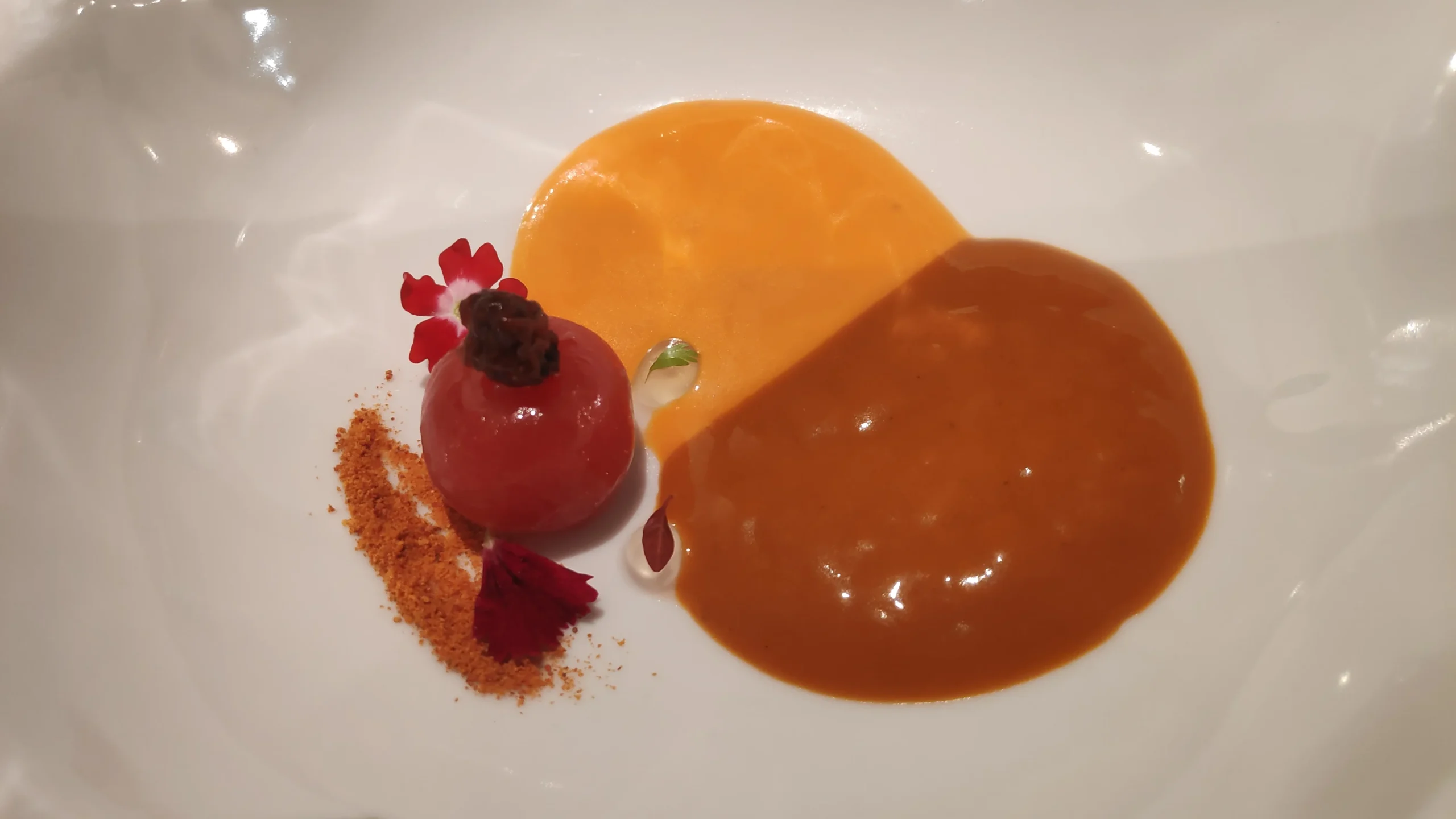 Doncs així precisament va començar el dinar al Miralles (i el meu any gastronòmic): amb un llagostí en carpaccio acompanyat d’altres productes de la mar. Després seguiria un gelat de pak choi (bleda xinesa) amb llet d’ametla i anxova; tomata de penjar en salmorejo natural i fermentat; gambes blanques (que a Vinaròs anomenen «panxudes») amb gazpachuelo malagueny; calamaret farcit amb ceba i el seu fòssil en forma d’oblea; arròs “a la llauna”; espardenya de mar amb escuma de boletus, picada i rovell d’ou; cua de bou estofada amb tàrtar de l’animal amb rovell i guacamole. I, de postres, una versió particular del cremadet de Vinaròs amb gelat de garrofa.